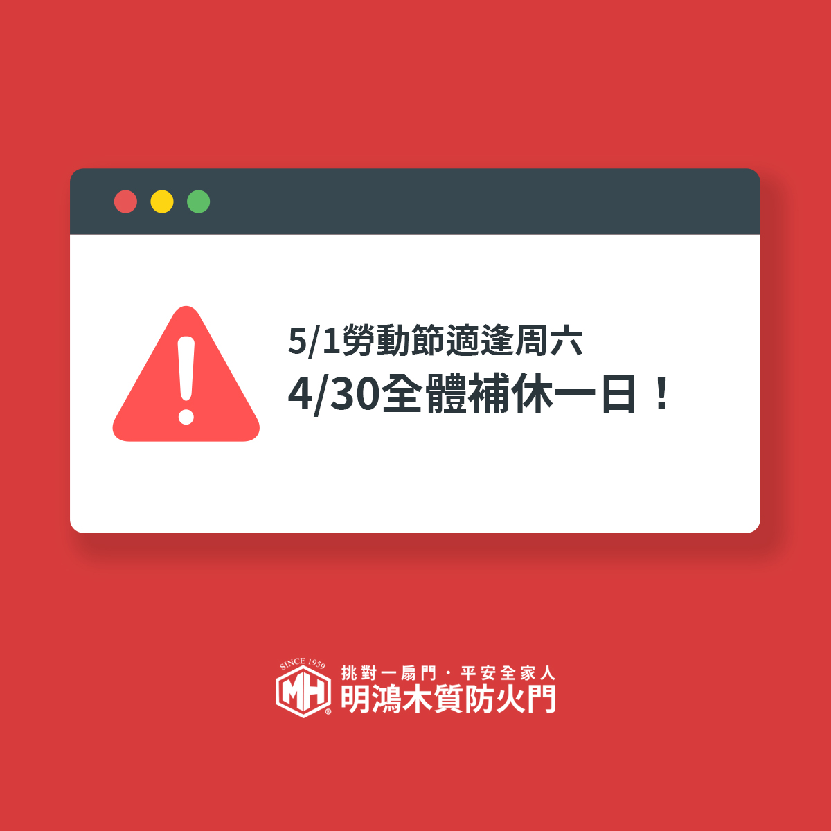 由於今年5/1勞動節適逢週末,我們將於4/30(本週五)補假。