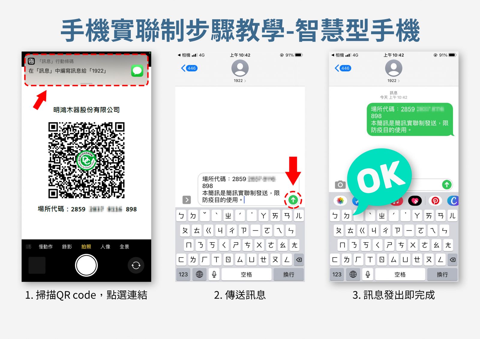 ※ 採用簡訊實聯制者,掃完QR Code並寄出簡訊後,請主動出示給本公司同仁查看。